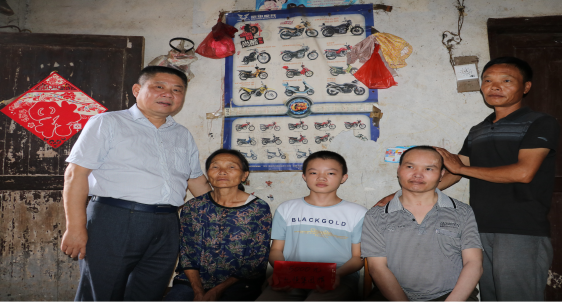 到達橋市鄉(xiāng)將軍沖村后,鄉(xiāng)黨委、鄉(xiāng)政府熱情接待了尹總等一行,對他們代表九恒董事長沈云立同志捐資幫扶行為給予高度贊揚并表示衷心感謝。在鄉(xiāng)鎮(zhèn)、村干部的帶領下,尹總一行還深入到貧困學生家中進行走訪慰問。他們每到一處,都會與幫扶對象面對面交談、心貼心交流,詳細了解他們的家庭情況、健康狀況、經濟來源等,聽取他們對目前存在的困難及生活方面的訴求,并鼓勵他們樹立信心,奮發(fā)進取,在黨和政府領導下早日脫貧致富。隨后,尹總代表九恒董事長沈云立同志將愛心助學款共計50000元發(fā)放到13名品學兼優(yōu)、經濟困難的學生手中。